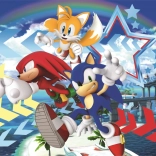 Bilder von Sonic, Tails und Knuckles in dynamischen Posen entführen direkt in die Welt der Geschwindigkeit und Abenteuer.