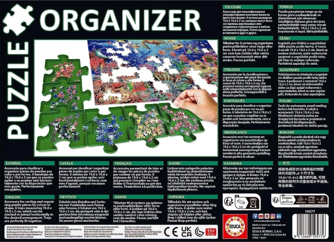 Vereinfachen Sie das Puzzeln mit dem EDUCA-Organizer. Dank der sechs praktischen Schalen in Puzzleform können Sie die Teile übersichtlich nach Farbe, Form oder Motiv sortieren und so den Aufbau beschleunigen. Die Behälter passen perfekt ineinander, sodass alles an seinem Platz bleibt.