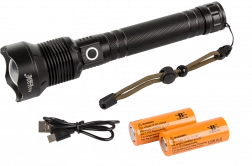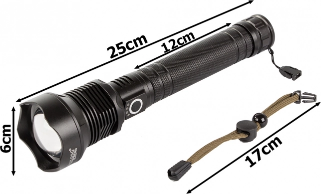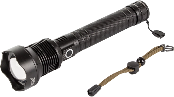Mit der stufenlosen Zoom-Funktion lässt sich die Breite und Reichweite des Lichtkegels einfach anpassen, bis zu 1000 m, was ihre Flexibilität im Einsatz erhöht. Sie wird von modernen, wiederaufladbaren Batterien für verlängerte Betriebszeiten betrieben.