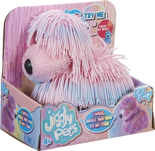 Der interaktive Hund JIGGLY PETS bringt Kindern jede Menge Lachen und Bewegung. Drücken Sie einfach die Taste am Kopf, und der Hund läuft los, wackelt und begleitet alles mit fröhlichem Bellen und Melodien. Seine weiche, fransige Oberfläche lädt zum Anfassen ein und fördert die sensorische Wahrnehmung.