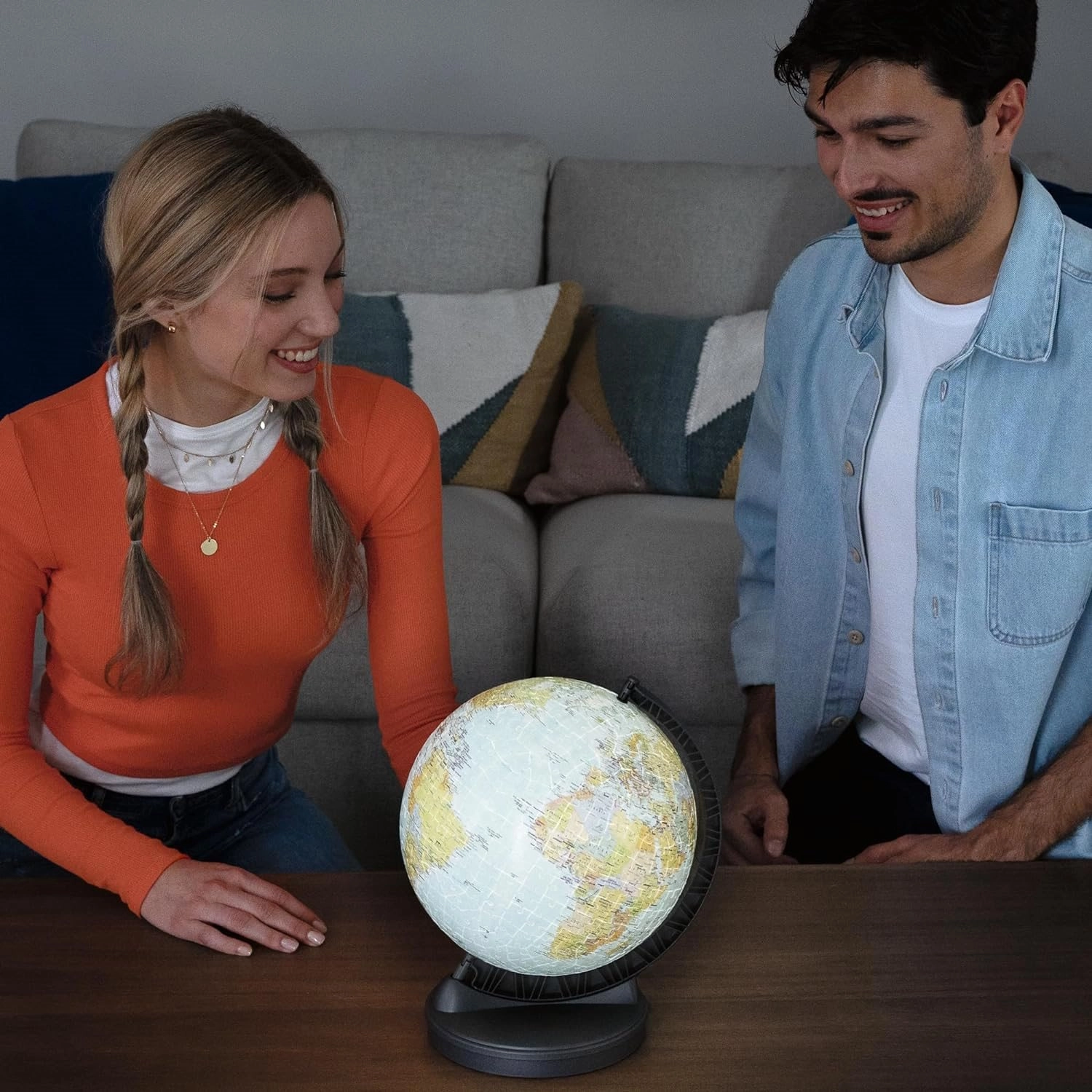 Das integrierte LED-Modul lässt Kontinente und Länder erstrahlen – ideal für das abendliche Betrachten und als stilvolle Deko im Kinderzimmer oder Wohnzimmer.