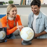 Dieser Premium-3D-Puzzle-Globus mit 22 cm Durchmesser besteht aus 540 stabilen, leicht gebogenen Kunststoffteilen, die fehlerfrei ineinander greifen. Nach dem Zusammenbau entsteht eine glatte und feste Kugel auf einem stabilen Sockel mit markierten Breitengraden. Dank des integrierten LED-Moduls leuchtet der Globus eindrucksvoll und wird zur Deko und Lernhilfe zugleich.