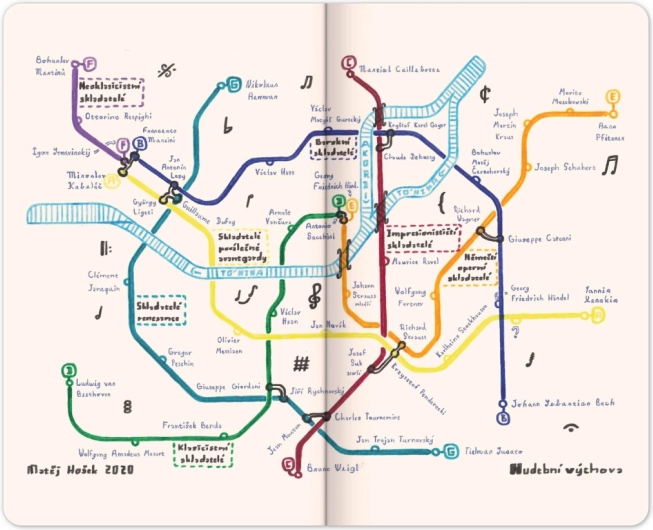 Maappi ist ein wohltätiges Projekt, dessen Hauptgesicht der siebzehnjährige Matěj Hošek ist, der seit seiner Kindheit mit einer schweren Form des Asperger-Syndroms lebt. Seine Eltern waren lange ratlos, bis sie ihm eines Tages einen Plan des Prager Nahverkehrs in die Hand gaben. Seitdem zeichnet Matěj seine einzigartigen U-Bahn-Netzpläne. Die besten Werke des jungen Designers finden Sie auf den Seiten dieses Notizbuchs, dessen Kauf Projekte unterstützt, die das Leben von Menschen mit Handicap verbessern.