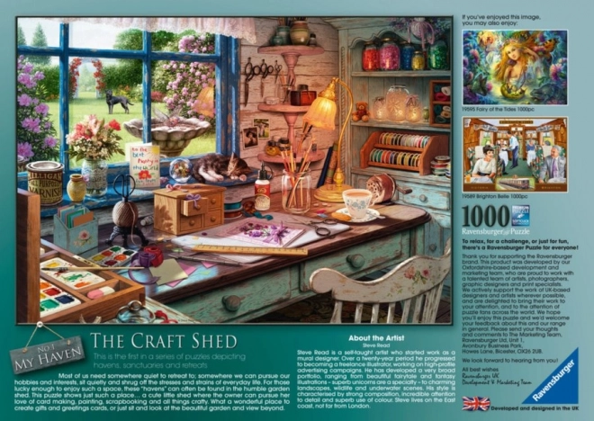 Entdecken Sie den Zauber einer ruhigen Handwerkswerkstatt im originellen Motiv des Künstlers Steve Read. Die hohe Verarbeitungsqualität und präzisen Stanzungen sorgen dafür, dass die Teile perfekt ineinanderpassen und das Puzzeln zu einer angenehmen Entspannung für die ganze Familie wird.