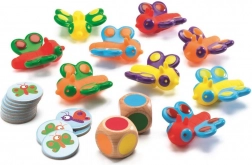 Dieses einfache und fesselnde Spiel fördert bei Kindern das Farbbewusstsein und die Konzentrationsfähigkeit. Ein Spieler wirft zwei Farbwürfel und sucht schnell den Schmetterling, der beide angezeigten Farben enthält. Wer ihn als Erster schnappt, erhält einen Gewinnchip. Ideal für das gemeinsame Spielen in der Familie und in Kindergärten.