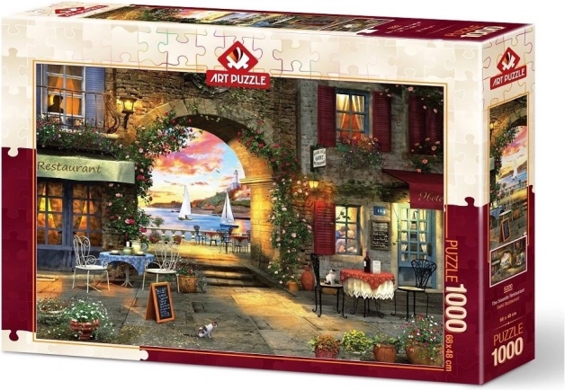 Genießen Sie beruhigendes Puzzeln mit einem Motiv, das Sie in die Atmosphäre eines Küstenrestaurants versetzt. Detailreiche Darstellung, satte Farben und hochwertiger Karton sorgen bei jedem Teil für ein angenehmes Erlebnis. Das fertige Bild in der Größe von ca. 68 × 48 cm eignet sich hervorragend zum Einrahmen und Ausstellen.