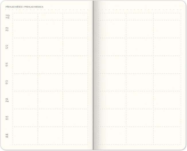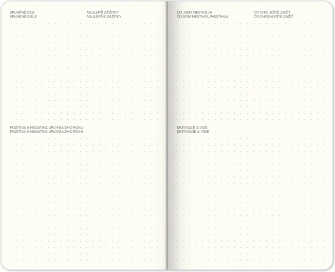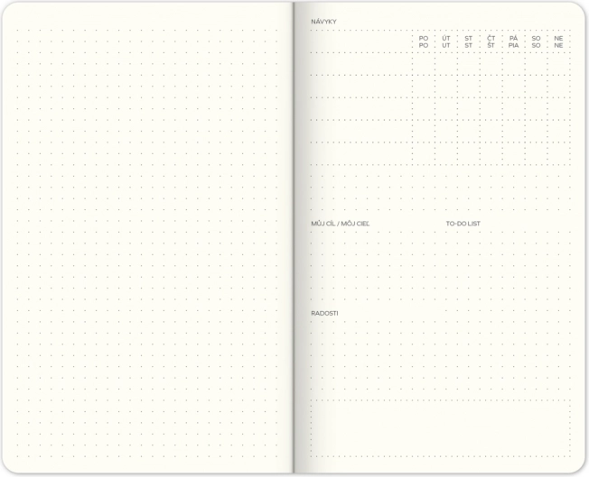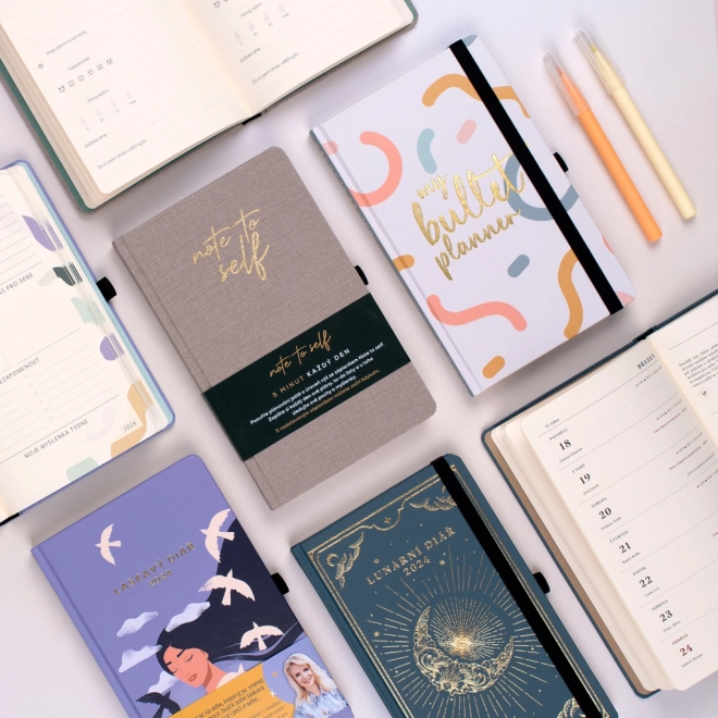 Möchten Sie Ihre Planung individuell gestalten? Dieser undatierte Wochenplaner My Bullet Planner im praktischen Format 13 × 21 cm ist ideal für Einsteiger in die Welt des kreativen Planens. Er hilft Ihnen, Gewohnheiten zu verfolgen, To‑do‑Listen zu führen und persönliche Ziele zu planen – und dank des undatierten Kalendariums können Sie jederzeit starten. Ausgabe auf Tschechisch/Slowakisch.