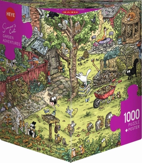 Entdecken Sie das HEYE Puzzle Simon's Cat: Abenteuer im Garten mit 1000 Teilen, in einzigartiger dreieckiger Verpackung und inklusive Puzzle-Poster. Perfekt für Puzzle-Enthusiasten.