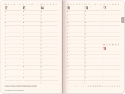 • Wöchentliches Kalendarium mit Spalten und Platz für tägliche Notizen