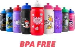 Die Flasche besteht aus recycelbaren Kunststoffen, die die strengen europäischen Normen 2011/10 für Materialien mit Lebensmittelkontakt erfüllen. Dank Schraubverschluss und ergonomischer Form liegt sie gut in kleinen Händen und nichts läuft aus.