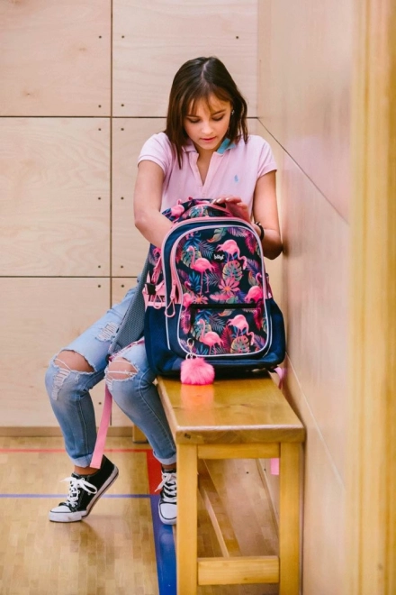 Schulrucksack Flamingo, geeignet ab der 3. Klasse der Grundschule und auch für die Sekundarstufe I. Der Rucksack wurde erfolgreich im ITC Zlín getestet.