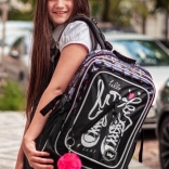 Drei separate Fächer mit Innenorganizer helfen, Ordnung zu halten und das Gewicht gleichmäßig zu verteilen. Nicht fehlen darf ein gepolstertes Fach für ein 15"-Notebook oder Tablet, ein vorderes Organizerfach mit abnehmbarem Schlüsselband mit Karabiner sowie eine verstärkte Geheimtasche im unteren Teil. Elastische Seitentaschen sind ideal für eine Trinkflasche. Der Rucksack besteht aus festem, wasserabweisendem Material, ergänzt durch Reflexelemente und einen trendigen flauschigen Anhänger.