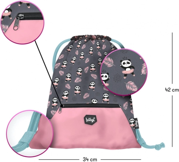 Schultasche, Federmäppchen und Beutel sind im verspielten Panda-Motiv aufeinander abgestimmt. Weiche Details und hochwertige Reißverschlüsse erfreuen Kinder, robuste Materialien überzeugen die Eltern.