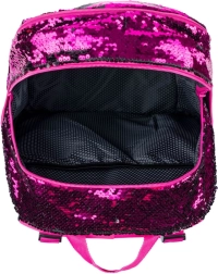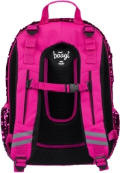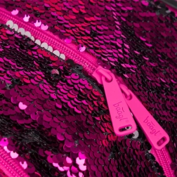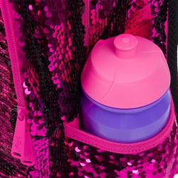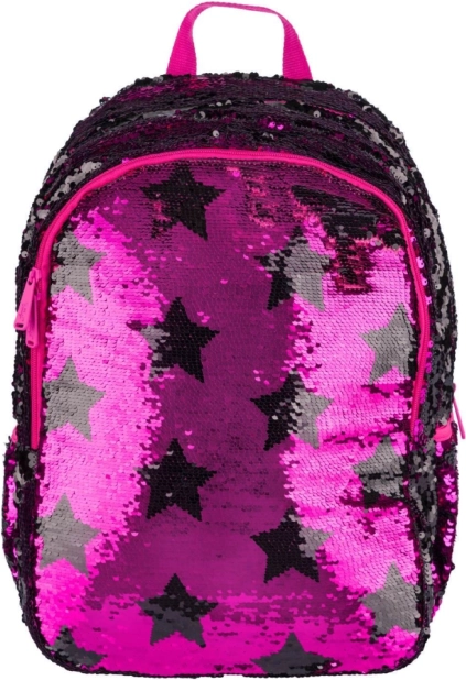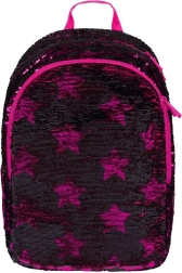 Rosa Pailletten und schwarze Sternenmuster verleihen dem Rucksack einen auffälligen Stil, ideal für Kinder, die aus der Menge herausragen möchten.