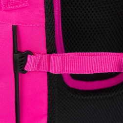 Die Sicherheit des Kindes wird durch reflektierende Elemente gewährleistet, die die Sichtbarkeit bei schlechten Lichtverhältnissen erhöhen. Seitentaschen und zwei separat verschließbare Kammern erleichtern die Organisation der Sachen.