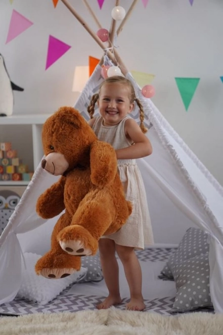 Dieser dunkelbraune Plüsch-Teddybär mit zarter Oberfläche und liebevollen Details wird zum treuen Begleiter für jeden Tag. Dank der flauschigen Füllung und des angenehm weichen Stoffes eignet er sich ideal zum beruhigenden Kuscheln und zum Schlafen.