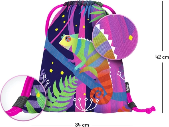 Der leichte und strapazierfähige BAAGL-Beutel mit stylischem Chamäleon-Motiv ist perfekt für Schule, Hobbys und Sport. Dank des robusten, leicht abwischbaren Materials hält er dem täglichen Gebrauch stand und bewahrt Ihre Sachen trocken und sicher auf.