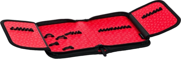 Innere Klappen mit elastischen Schlaufen halten Stifte, Buntstifte und weiteres Zubehör perfekt geordnet und stets griffbereit.