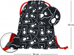 Der schwarze Beutel ist mit weißen TERIBEAR-Bärchenmotiven verziert – ein stylisches Accessoire für Schule und Freizeit.