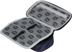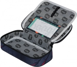 Das stabile Etui-Federmäppchen mit aufklappbarer Trennklappe hält Schreibutensilien übersichtlich geordnet. Eine innere Reißverschlusstasche und ein Stundenplan sind vorhanden, der Inhalt ist nicht enthalten. Der Beutel für Schuhe oder Sportunterricht besteht aus widerstandsfähigem, leicht zu reinigendem Material; der Kordelzug mit stabilen Kordeln ermöglicht bequemes Tragen auf dem Rücken.