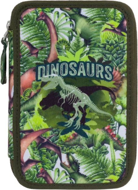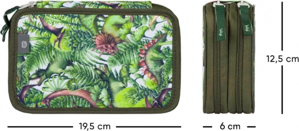 Dieses Mäppchen bietet ein einzigartiges Dinosauriermotiv mit auffälligen grünen und braunen Blattmustern.