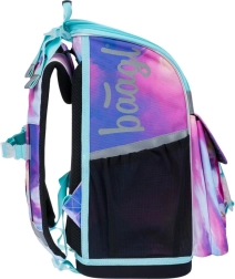 Der Ranzen zeichnet sich durch ein neues Klappsystem aus, das den Zugang zu Schulmaterialien direkt vom Tisch aus erleichtert. Innen finden Sie eine transparente Tasche mit Stundenplan, einen Innenorganizer mit Gummizug und seitliche Netztaschen, die sich für eine Trinkflasche eignen.