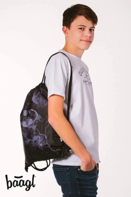Praktischer Beutel für Schuhe oder andere Kleinigkeiten im Batman-Stil der Marke BAAGL. Ideal für Freizeitaktivitäten mit der Möglichkeit, ihn auf dem Rücken zu tragen dank der stabilen Kordeln.