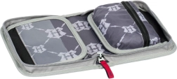 Aufklappmechanismus für leichten Zugriff direkt von der Schulbank, innerer Organizer mit Gummiband, transparente Tasche mit Stundenplan und geräumige Fächer einschließlich isoliertem Frontfach.