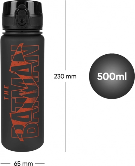 Diese schwarze Flasche mit dem ikonischen roten BATMAN-Logo überzeugt durch Design und Funktionalität. Der leichte, robuste Tritankörper liegt gut in der Hand, nimmt keine Gerüche an und ist gesundheitlich unbedenklich (frei von BPA, PVC und Phthalaten). Das praktische Volumen von 500 ml und die übersichtliche Skala zur Kontrolle der Flüssigkeitsaufnahme machen sie zum idealen Begleiter für jeden Tag.