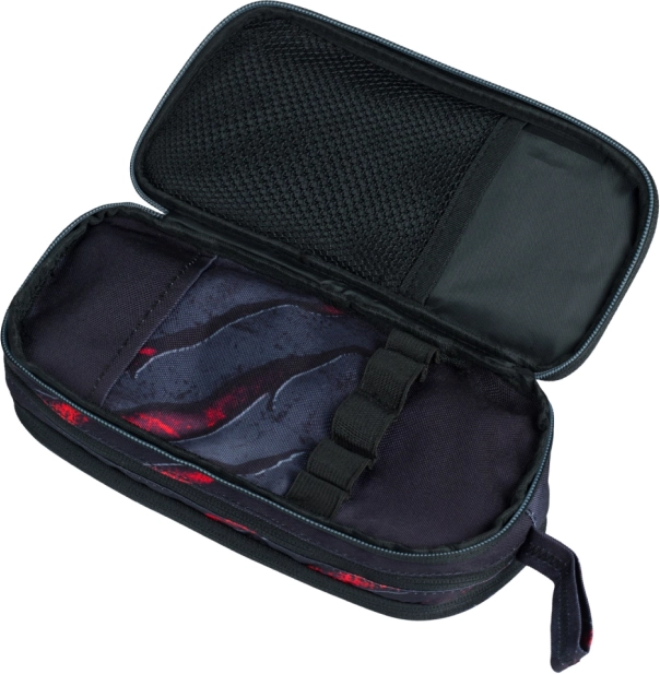 Das einzigartige schwarz-rote Design aus robustem Textilmaterial macht dieses Federmäppchen nicht nur praktisch, sondern auch zu einem modernen Accessoire.