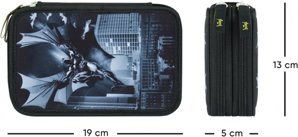 Die inneren Gummischlaufen sind fest und elastisch und halten sicher auch dicke dreikantige Buntstifte, Filzstifte oder Textmarker. Zudem gibt es ein kleines Fach für Münzen, Radiergummis oder andere Kleinigkeiten. Das robuste Textilmaterial und die hochwertigen Reißverschlüsse sorgen für eine lange Lebensdauer, und das attraktive BATMAN-Motiv erfreut jeden Fan.