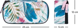 Das stylische BAAGL-Schuletui mit tropischem Blättermotiv bietet eine stabile Konstruktion, eine übersichtliche Innenorganisation und eine praktische klappbare Trennwand. Im Inneren finden Sie eine Reißverschlusstasche, eine transparente Tasche für den Stundenplan und elastische Halterungen für Schreibutensilien. Das Etui wird ohne Inhalt geliefert, sodass Sie es leicht nach Ihren Bedürfnissen bestücken können.