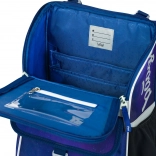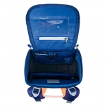 Die neue aufklappbare Öffnung ermöglicht Kindern schnellen Zugriff auf die Utensilien direkt vom Platz aus. Innen finden sich eine transparente Tasche für den Stundenplan und ein durchdachter Organizer mit Gummiband zur Fixierung von Heften und Büchern. Die Seitentaschen aus robustem Netzmaterial bieten Platz für eine Trinkflasche, während die isolierte, geräumige Fronttasche mit Schnalle die Brotzeit schützt.