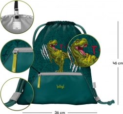 Der stylische und funktionale Beutel BAAGL T‑Rex eignet sich ideal für Hausschuhe, Sportzeug und kleine Dinge für AGs. Dank des robusten, leicht abwischbaren Materials hält er dem täglichen Gebrauch stand und schützt den Inhalt zuverlässig.