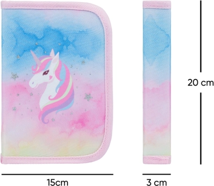 Dank der kompakten Maße passt das Mäppchen leicht in den Schulrucksack, und die pastelligen Farben mit Einhornmotiv lassen jeden Schultag erstrahlen. Lieferung ohne Füllung, sodass Sie es genau nach Ihren Bedürfnissen bestücken können.