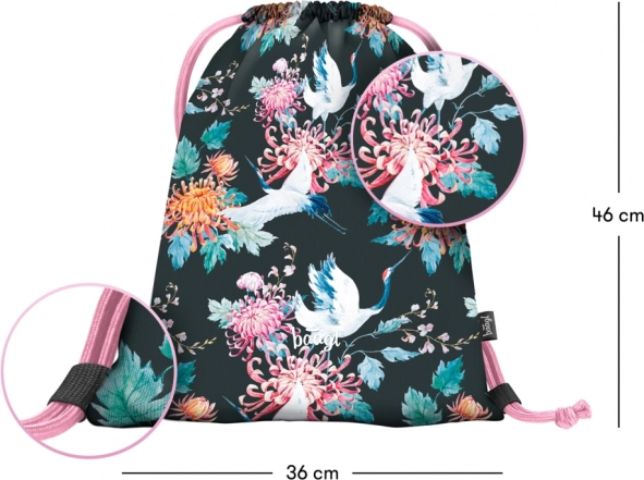 Entdecken Sie die perfekte Kombination aus Stil und Praktikabilität mit unserem Rucksack Vögel. Dieser Rucksack ist ideal zum Tragen von persönlichen Gegenständen oder leichtem Gepäck in einem eleganten Design mit Vogel- und Blumenmotiven auf schwarzem Hintergrund.