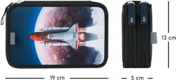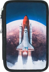 Doppelt gestaltetes Federmäppchen Space Shuttle bietet einen verstärkten Rücken für einfache Handhabung und hochwertige Gummischlaufen, die auch dicke Buntstifte halten. Enthält auch ein kleines Fach für Kleinigkeiten.