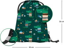 Der fröhliche Vorschul-Beutel mit Krokodil-Motiv ist ideal für Schuhe und Kleinigkeiten für den Kindergarten und die Freizeit. Er besteht aus robustem, abwischbarem Material und lässt sich dank der starken Kordeln bequem auf dem Rücken tragen.