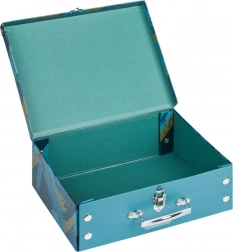 • Faltbarer Koffer aus festem, laminiertem Papier mit beschlagenen Ecken.
