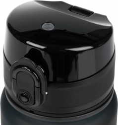 Der Deckel mit Sicherung und ausklappbarem Trinkstutzen verhindert ein unbeabsichtigtes Öffnen in der Tasche und sorgt für sauberes und bequemes Trinken unterwegs.