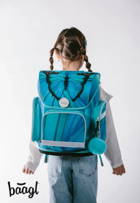 Das Mäppchen bietet eine klassische Anordnung mit zwei Klappen und einem hochwertigen Reißverschluss. Der Beutel mit Schmetterlingsmotiv ist ideal für Turnschuhe oder andere Kleinigkeiten und kann leicht am Ranzen befestigt werden. Die praktische Brotdose ist ideal zur Aufbewahrung des Mittagessens, während die Schutzmappen für Hefte im Format A4 sicherstellen, dass Dokumente in Ordnung bleiben.