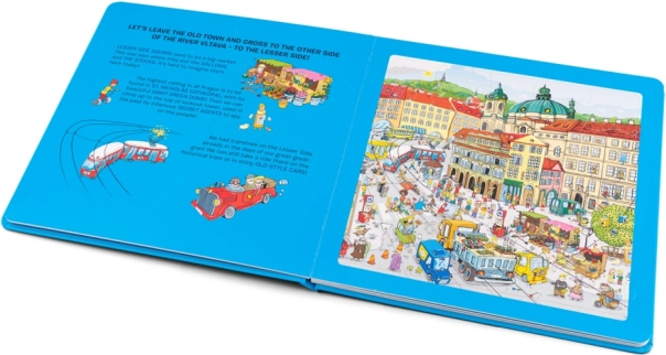 Eine praktische Möglichkeit, wie Ihre Kinder spielerisch Prag entdecken können, indem sie die Puzzles auf jeder Buchseite zusammenlegen.