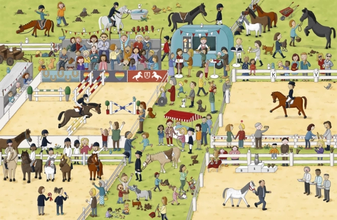 Genießen Sie einen wundervollen Tag zwischen Pferden und Ponys in diesem großen, detailreichen Bilderbuch. Es erwarten Sie großformatige Illustrationen, fesselnde Szenen vom Reiterhof, Ausritte, Pferderennen sowie Suchaufgaben mit wiederkehrenden Figuren. Eine großartige Wahl für kleine Pferdefans, die Aufmerksamkeit, Wortschatz und Erzählen fördert.