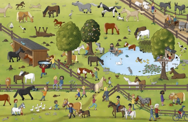 Betrachten Sie reich ausgestaltete Szenen aus der Natur, den Ställen und Weiden. Jede Seite steckt voller Details, die Kinder begeistern und ihre Neugier auf die Welt der Pferde und Ponys fördern.
