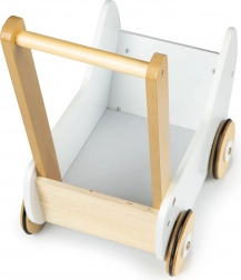 Holzpuppenwagen ECOTOYS ist das perfekte Spielzeug für Kinder ab 3 Jahren, das ihnen beim Laufenlernen hilft und ihre Fantasie fördert. Der Wagen hat eine stabile Holzkonstruktion und rutschfeste Bänder an den Rädern.