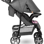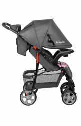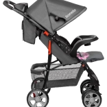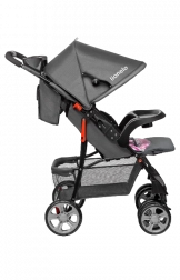 Sicherheit hat Priorität: Fünfpunktgurte mit weichen Polstern, ein Schutzbügel mit Tablett und Becherhalter sowie Tests gemäß Norm EN 1888 (SGS-Labor) sorgen für verlässliche Sicherheit im Alltag. Die wendigen EVA-Räder mit weicher Federung an der Vorderachse dämpfen Unebenheiten, fahren leicht durch die Stadt und die Arretierung für die Geradeausfahrt hält die Spur auf Kopfsteinpflaster stabil.