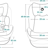 Für erhöhte Sicherheit ist der Sitz mit einem 5-Punkt-Gurt mit weichen Polstern und einem seitlichen Schutz aus PP und EPS zur effektiven Energieabsorption bei Aufprall ausgestattet. 7-stufige Einstellung der Kopfstütze und 4 Neigungspositionen gewährleisten Ergonomie und Komfort in jeder Wachstumsphase. Der abnehmbare Bezug ist leicht waschbar – so bleibt die Pflege schnell und unkompliziert.