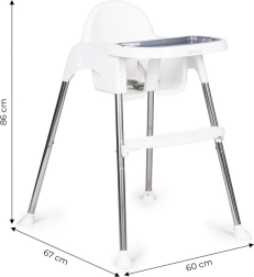 Der moderne 2-in-1 Hochstuhl ist aus hochwertigen Materialien gefertigt. Der Stuhl eignet sich für Kinder von 6 bis 36 Monaten. Er kann in zwei Höhen aufgebaut werden. Vorteile des Hochstuhls: bequemer Sitz mit Rutschschutz, 5-Punkt-Sicherheitsgurte, stabile rutschfeste Füße, praktische Fußstütze, abnehmbares Kunststofftablett. Die Maße des aufgebauten Stuhls betragen ca. 86 x 67 x 60 cm. Die maximale Belastbarkeit beträgt 15 kg.