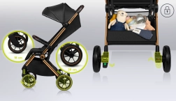 Der Kinderwagen Lionelo Cloe ist die ideale Wahl für Eltern, die einen kompakten, leichten und leicht manövrierbaren Kinderwagen ohne Kompromisse bei Komfort und Sicherheit suchen. Dank der großen EVA-Schaumräder mit PU-Dämpfern meistert er Unebenheiten, während die um 360° schwenkbaren Vorderräder ein wendiges Fahren in der Stadt ermöglichen.
