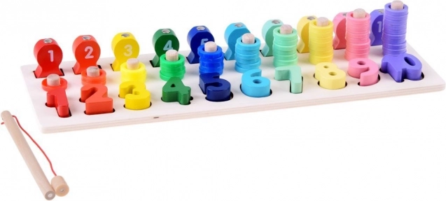 Das hölzerne Bildungsspielzeug ermöglicht Kindern, Formen und Zahlen zu erkennen und spielerisch bis zehn zu zählen.